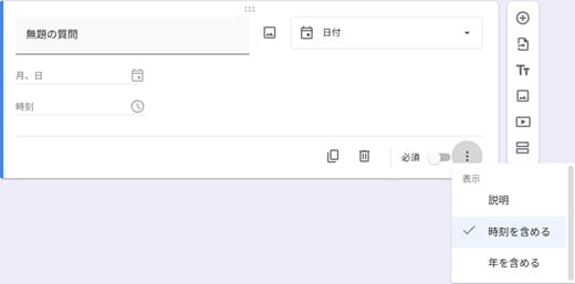 - 日付の質問に時間を入力する欄が追加される