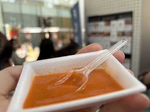 入口手前のお店が試食を配っていたのだ。バターチキンカレーだそうだ。