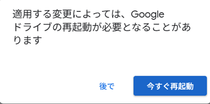 保存ボタンをクリックするとドライブを再起動する必要があると表示されるため、今すぐ再起動をクリックする。