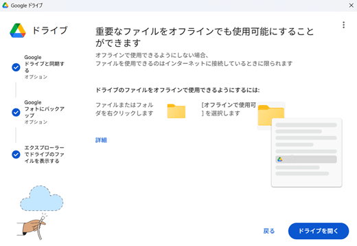 その後はドライブアプリの説明がいくつか入り、ドライブが開く。