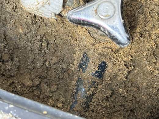 上の方の土はただ濡れているだけだったが、下に埋まっていた土はかなり粘着質で固かった。粘土というよりはヘドロって感じ。うへぇ~汚そう。