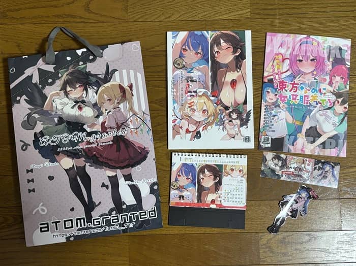 その他 (7-9年前、どこの同人誌買ったっけ ? 無料配布で扇子貰った記憶もあるし、にとりの帽子も買ったし、クリアファイルがとんでもない数あるぞ。Zippoとタペストリー当たってもいる。あと缶バッジも。今ではほとんど友人に譲っちゃって手元に無いけど。ていうか金沢東方祭 2回行ってる気がするんだが流石に気のせいか ?)