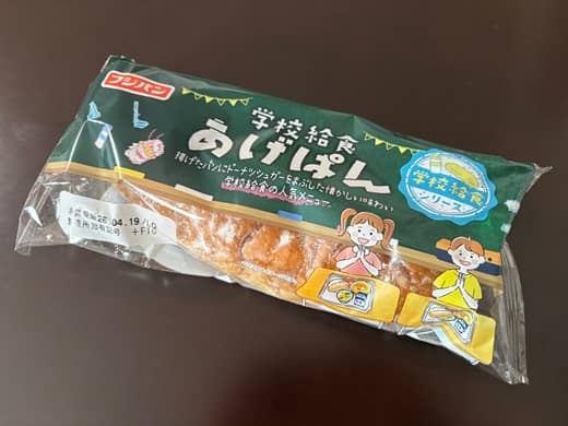 あげぱんって給食のイメージだし、まれにパン屋さんに置いてあることがある、くらいの認識だった。けどこうやって売っているものもあるんだなぁ。